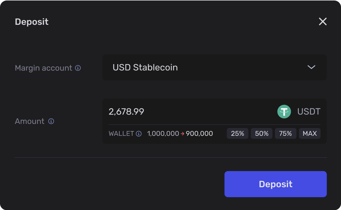Deposit and trade directly in dollars. No need to hold or hedge BTC/ETH spot, making trading cheaper, simpler and more neutral.